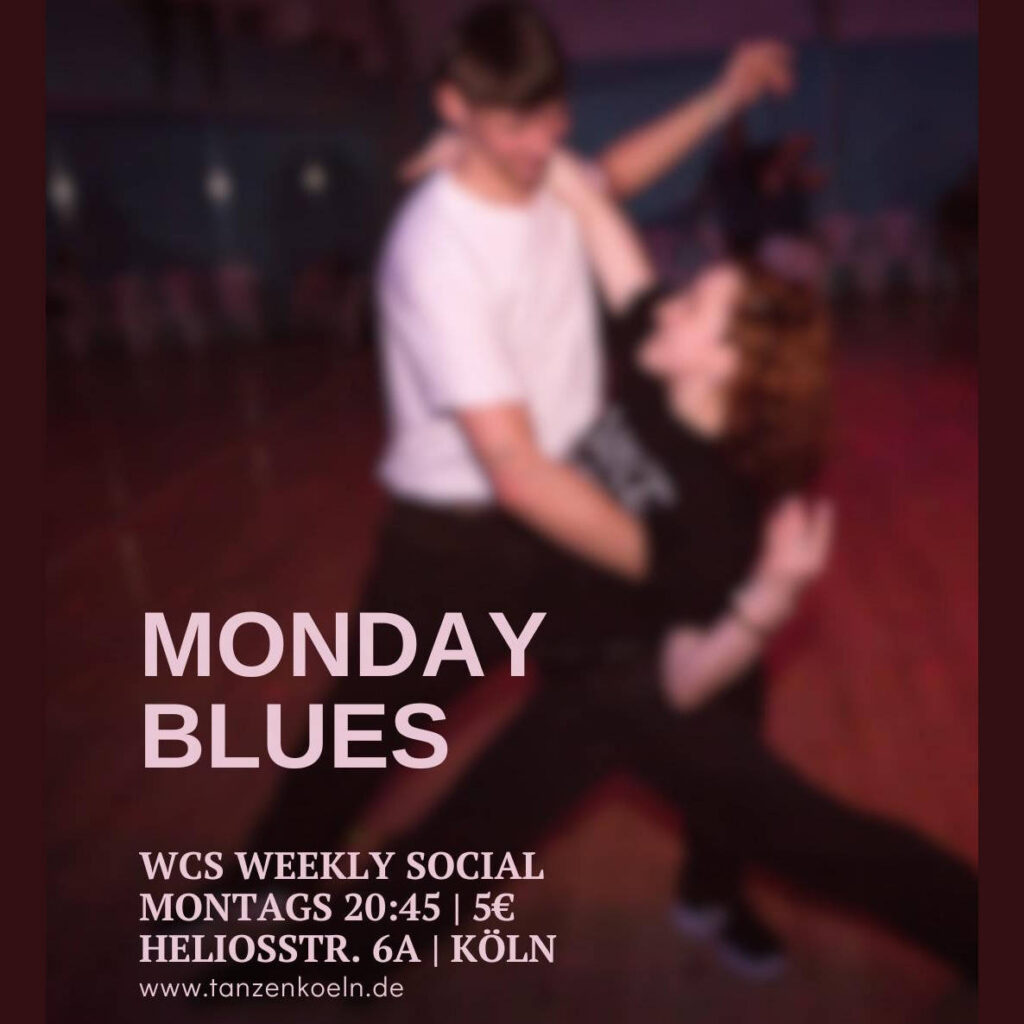 Mo. 3. November 2025 @ 21:30 – 23:30 – Monday Blues – euer wöchentliches West Coast Swing Social in Köln! Dance the Monday Blues away! Eintritt: 5 €